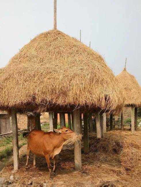 下半年也是稻谷收成的时候,爷爷就组织爸妈,叔叔,伯伯们收集田里的禾杆搭个很高的牛棚,这样牛在春季的冷时候就可以在下面休息暖和点,饿了可以抬头吃点草,等他们搭好牛棚后我们堂兄弟们都会爬上去玩,爷爷有时候也迷信,会在快过年的时候拿些编工具的竹子,烧了让我们十来个孙子孙女们,跨过去,说可以吓跑鬼怪,祸害我们的东西。