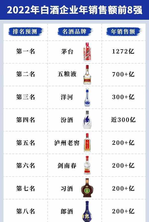 2022年,茅台的营业额1272亿,迈过上千亿大关,五粮液700亿以上,洋河、汾酒达300亿以上下。泸州老窖、剑南春、习酒、郎酒等200亿以上。百亿以上更是遍地开花。
