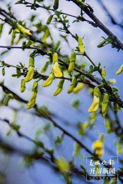 金雀花又名金雀梅、黄刺条,为锦鸡儿属中直立生长的大灌木,生长在向阳坡上,喜阳耐旱。