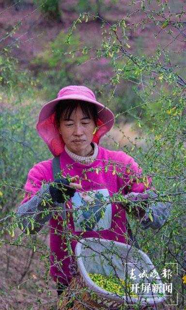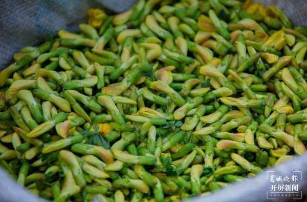 “金雀花在荒山荒坡上都可以栽种,一年栽种十年受益,不用刻意浇水施肥,也不用多费心管理,每年阳春三月它就会自然开花。在收获的这一季,两个人摘半个月就能有五千多元的收入。”侯树梅说。