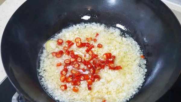 大蒜切碎,不要切得太碎,颗粒略大一些。小米椒切圈。