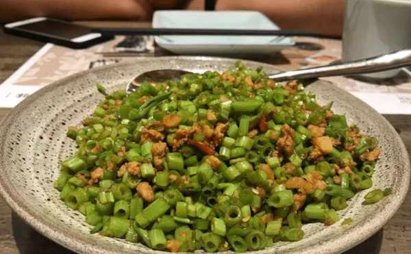 空心菜是一道四季皆宜的绿色菜肴。与猪肉搭配,味道特别鲜美。空心菜的根部含有丰富的草酸和丰富的钙质。它富含粗纤维。整道菜的热量都不高。空心菜和猪肉碎是绝配。吃起床有食欲,补充钙铁元素,促进肠道蠕动,减少便秘和肠道问题,早吃有益。