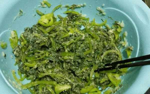 3:加入少许盐和少许十三香,用手拌匀包在菊花表面,蒸出来的菊花很好吃。