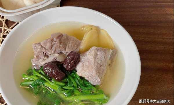 蜜枣西洋菜猪骨汤是广东人的最爱。西洋菜含有丰富的钙、铁和草酸。大多数南方人天天吃。不仅可以炒菜当菜,煲汤也很有营养。可以和猪骨汤一起吃。补充丰富的钙元素,补血益气,还可以清肺排毒,让秋天万物落地,早吃早受益。