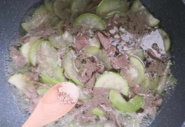 第四步:将适量的高汤倒入锅中。你可以用猪骨汤。如果没有,建议放点浓汤进去,这样汤的味道会更好。然后将西葫芦放入锅中,加少许盐,煮约3分钟。第五步:将猪肝放入锅中,继续小火煮约10分钟。3分钟至材料完全煮熟,加入一些香葱,搅拌均匀即可食用。