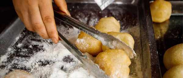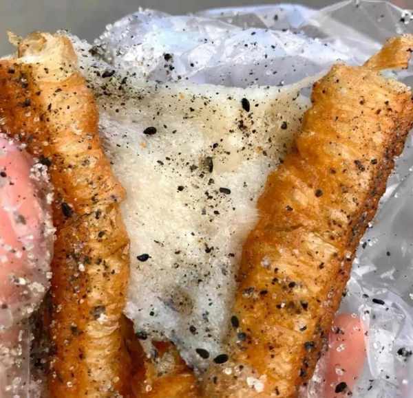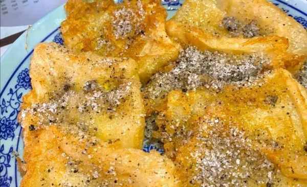 “白糖糕”看着表皮金黄,里面可是软糯的很呢,蘸的可不是普通白糖,更像是经过更加细致研磨出来的棉糖,吃起来不会有什么甜腻感。