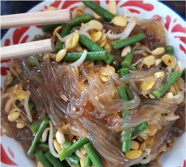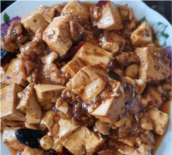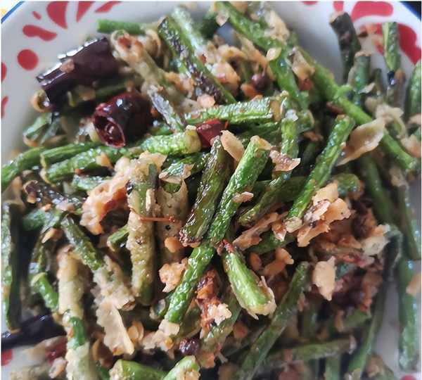 一个凉拌粉丝豆芽,里面还加了四季豆一起搅拌,三种配菜开胃解腻,只是简简单单地加了一点蒜水和酱油,气质就已经很好了。一个麻辣豆腐用干辣椒炝香之后,就倒入老豆腐开始炒,一定要勾芡才会粘稠。还有一个干煸四季豆,把四季豆炸得外焦里美,在和干辣椒花椒一起煸香,干干脆脆有点微辣的口感真的不错。