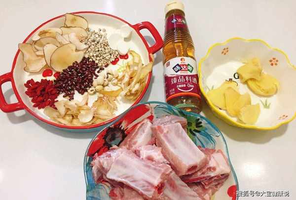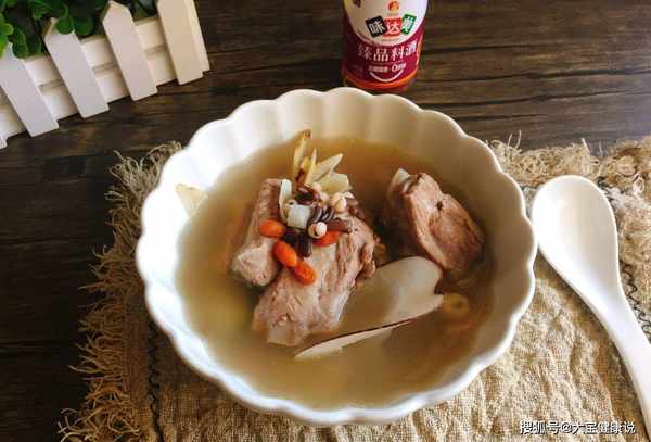 材料选择:买排骨450克(推荐排骨,排骨的肉质很新鲜),海椰子8克,玉竹约10克,莲子百合少许,山药一块(山药要选厚一点的,厚的适合炖),薏米20克(又名大麦,大麦要烤得去壳无虫眼,颜色很均匀,有独特的香气),姜一小块,料酒几勺,盐少许,胡椒粉少许,水1500ml,其他调料。