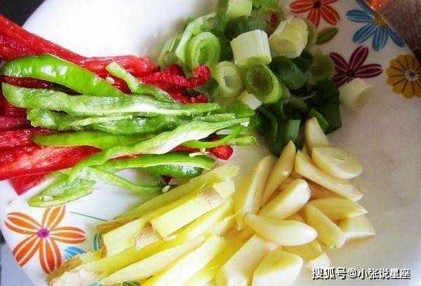 5:干辣椒洗净切块,姜切几片,蒜全部切薄片,洋葱切几段,然后用水洗净切块切青色胡椒。薄片,准备好焯过水的猪肝配上一点小菜,我们就来学习一下猪肝这道菜的做法吧。