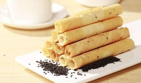 鸡蛋卷色泽金黄漂亮,吃起来酥脆香甜,特别美味,它既是可口的零食,也可以作为冷盘招待客人。街边或超市里的卖的鸡蛋卷是用专门机器制作的,看着工艺复杂。