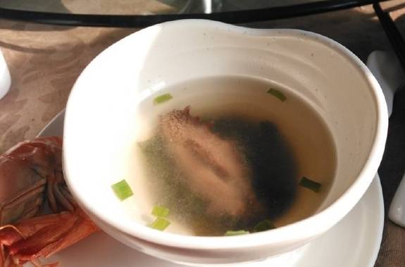海参和大虾。大虾没来得及拍照就分发好了,一人一只,个头很大,比我的手掌还大一些,肉质非常饱满,吃起来很过瘾。高汤海参也是每人一份,海参非常入味,口感弹牙,汤头味道鲜美。