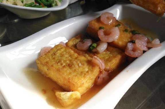 虾仁豆腐。我超喜欢的一道菜,豆腐感觉不是普通的豆腐,做的时候应该加入了鸡蛋,口感特别细嫩,味道极好。