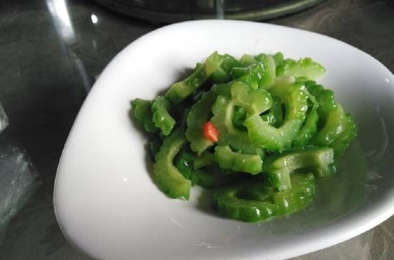 凉拌苦瓜。没有那么苦,还是脆脆的口感,味道还不错。