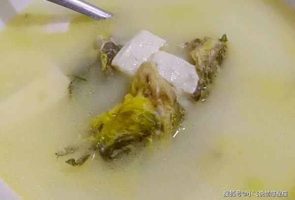 7:加入几滴香醋,撒上葱花,煮一分钟,收汁捞出碗中。这道浓汤即出锅又好吃又补钙的黄辣豆腐汤。