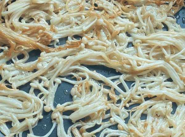 7:最后加入少许香油,快速翻炒片刻即可出锅。这道菜包含金针菇炒鸡蛋,直接从锅里端上来。金针菇超级鲜软,鸡蛋非常清淡可口,营养价值超高。