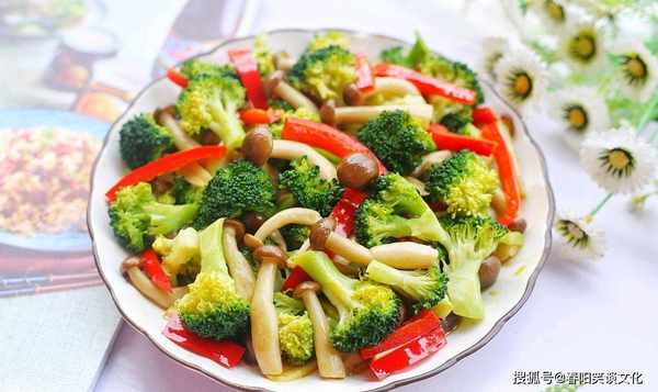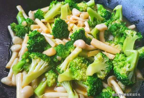 第二,香菇和白玉菇是非常新鲜的蘑菇之一。两者都必须用清水清洗。香菇去根,放入水中汆烫几分钟,然后沥干水分待用,然后在锅中加热油。先把香菇用大火炒一下,然后加入西兰花稍微炒一下,然后加入蚝油和酱油,撒上盐和鸡精,小火稍煮收汁,捞出平底锅。