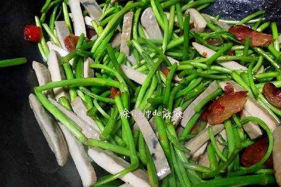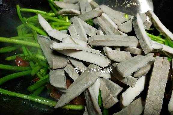 4、最后将臭干放进去,和芦蒿快速的翻炒均匀即可。