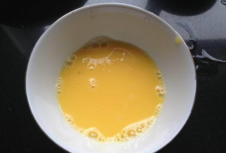 1:准备上述用到的食材,将几个鸡蛋分别磕入一个器皿里,里面可以调入半勺清水,撒上若干食盐和胡椒粉,将蛋液用力搅散好。
