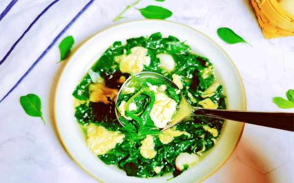 6:盛出来食用,这道春天第一鲜汤做好了,枸杞芽本身味道独特,鸡蛋汤营养也高,适合给家里人还食用。