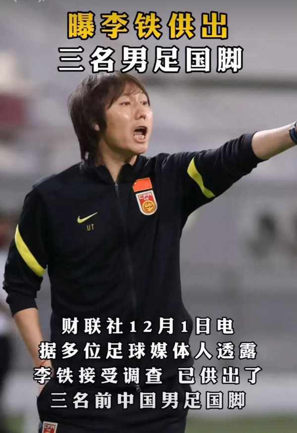 2022年12月1日,前男足主教练李铁,被带走调查,这位02年“黄金一代”的球员,真的“进去了”。正如一个段子:“中国足球要从什么抓起?从教练“抓”起!”原来里皮的出走,不仅是因为成绩,还是因为不想被“抓”呀!