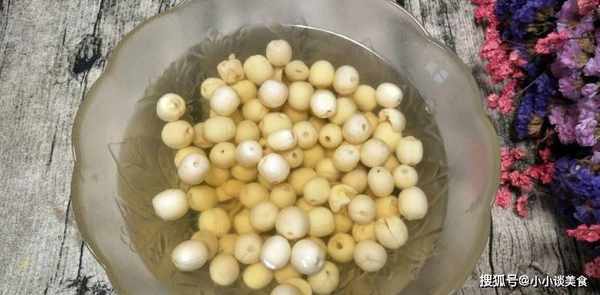 泡莲子的方法:莲子不要用清水泡,可以用温水加入食碱,等食碱溶化后,将莲子去壳,用热水泡莲子2分钟左右小时,所以莲子很容易煮过头