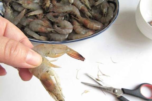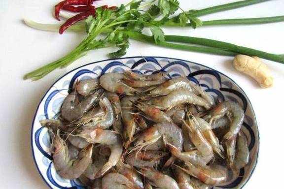 【食材】基围虾300克、葱2棵、生姜3片、蒜头2个、红干椒2个、盐适量、香菜1棵