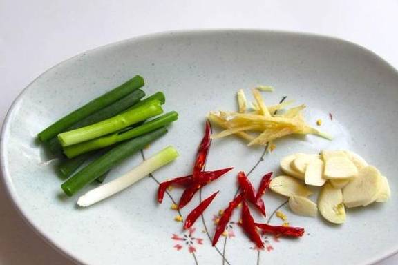 3、将葱姜蒜、辣椒切好,怕辣可以不放辣椒