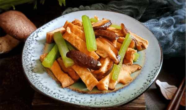 推荐词:芹菜香菇炒干条是一道非常美味又营养的菜肴。干香菇非常鲜软,而香菇则细腻清香。它比猪肉更开胃。芹菜可以增加风味并提供强烈的食欲。老少皆宜,全家人都爱吃。