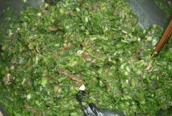 4:小茴香去掉黄叶,然后剪掉老的根茎,小茴香叶放入盐水中浸泡15分钟左右,然后沥干水分,小茴香剁成细末备用。