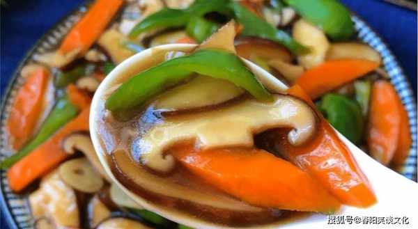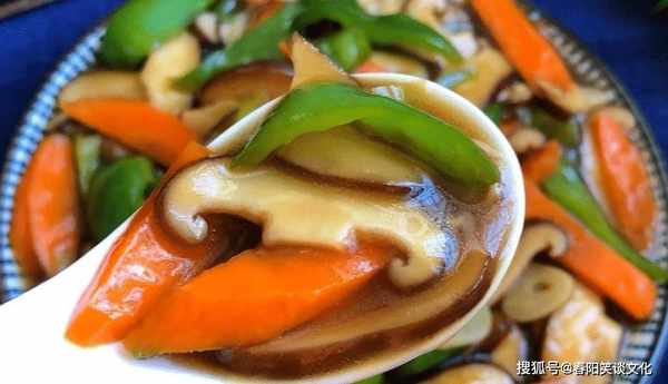 烹饪技巧:宜选用胡萝卜、青椒和新鲜香菇。新鲜的香菇应该漂白,胡萝卜也应该漂白。掌握多种食材的烹调顺序。