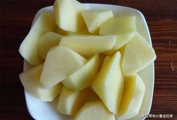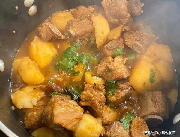 第六步:然后将排骨放入砂锅中,用筷子挑出一些香料,加入适量温水,最后加入切碎的土豆,小火慢炖30分钟左右。