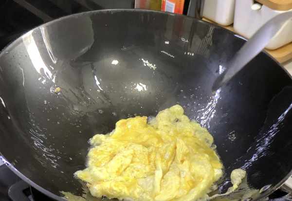 步骤2:起锅烧油,倒入鸡蛋液加热凝固,然后再出锅备用。