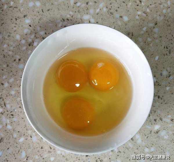 第三步:将3个鸡蛋放入碗中,撒上盐和少许白胡椒粉,加入少许料酒和少许水将鸡蛋软化。