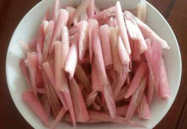 1:把买来的鸡茎捏掉多余的部分,把鸡头茎表面的皮去掉,表面皮上有一些斑点,记得去掉,然后把鸡头茎切段以后使用。