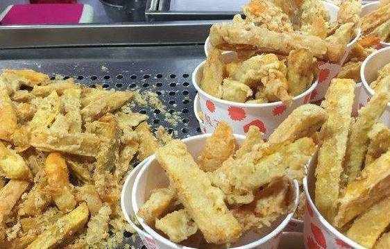 只要先把红薯给去皮后洗干净切成条,之后再在面糊里面裹上一层后在油锅里油炸就能做出这样的小吃来了。这样一份小吃卖10块钱,好吃是好吃,就是贵了点。虽然说现在番薯的价钱不便宜,但是这样的价钱也是挺贵的。不过,价钱是贵了点,但是买的人还是很多的呢。