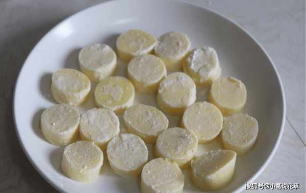 第五步:在锅底加入更多的食用油。油温应为60%。日本豆腐裹上一层生粉,油锅里把所有的东西都炸到两面金黄,翻面炸至凝固即可食用。