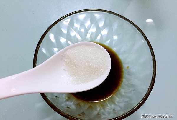 第四步:准备一个干净的空碗,加入少许盐、一茶匙糖、少许冷水、2汤匙生抽、半匙老抽、半匙蚝油、少许生粉,将汁搅拌均匀。