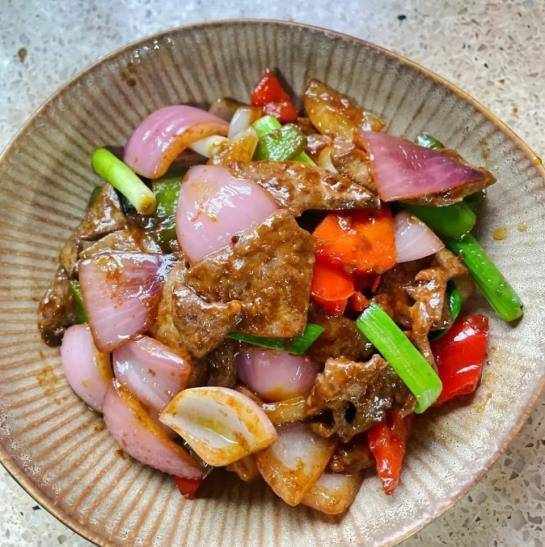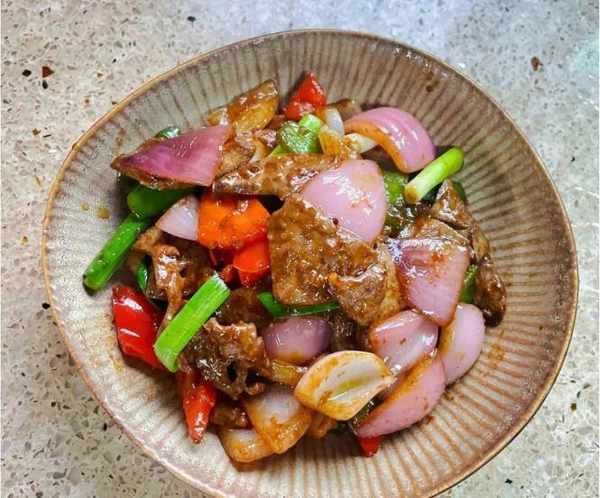 准备食材:买2个新鲜蒜苗(蒜苗又叫蒜叶,长出蒜头,叶子很新鲜闻起来很香,可以激发菜的香气),干辣椒少许,少许蒜瓣猪肝约400克(猪肝是一种高营养食材,营养极佳,价格便宜,但不能天天吃,适合炒着吃,嫩滑入味,提供为身体补充营养,皮肤越来越好),选择洋葱一个,青椒两个,红辣椒一个,黄酒少许,菜籽油少许,生抽少许,料酒少许,蚝油一勺,少许糖和鸡精,大量的水,等等。