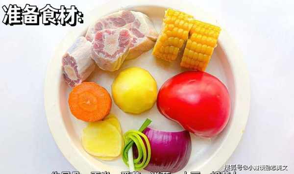 准备一些食材:牛尾骨选择300克左右(也可以选择羊排或者猪排,可以用来炖汤,但是记得去腥),胡萝卜半根,优质西红柿一个,黄心土豆紫洋葱半个,料酒少许,鲜芝麻少许,姜一大块,糯玉米一块,凉水少许,热水少许,盐少许,鸡精半勺,味精,少许白胡椒粉和其他香料。