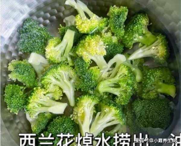 第三步:锅中烧开半锅水,加入盐和食用油,倒入西兰花焯几分钟,捞出过冷水浸泡,控制表面水分。