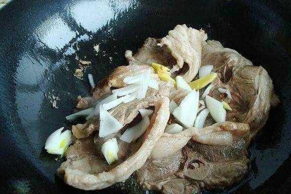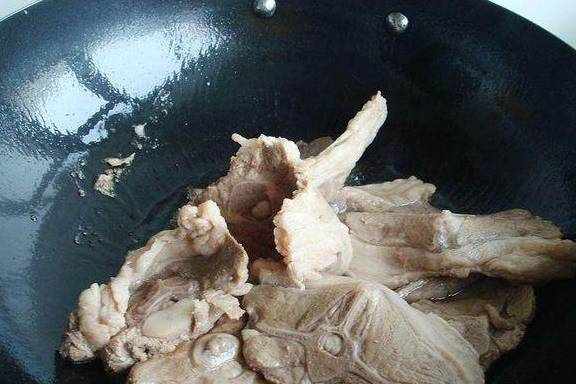 3、热锅凉油(正宗的用羊尾巴油),油热7成下蝴蝶排翻炒出香味