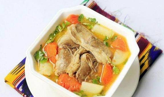 胡尔炖是新疆维吾尔族用羊肉、土豆、胡萝卜等炖在一起的一种特色美食佳肴,是他们在过节、婚宴时用来招待客人的一种美食。做法简单有营养,一般就用新鲜羊肉和土豆、胡萝卜、皮牙子,炒一炒炖一炖,就很美味了,主要是新疆的羊肉好而新鲜。他们民族喜欢吃新鲜的,而且在牧区还不洗,就怕把羊肉的味洗没了,最大的特点就是喜欢吃原汁原味。