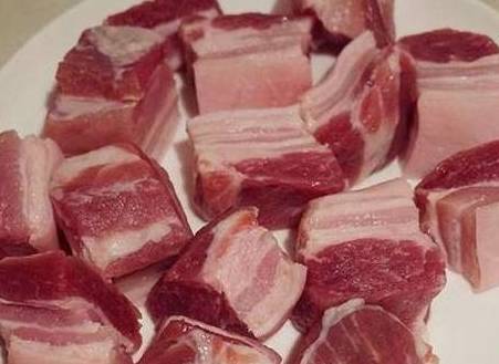 红烧肉最好的肉莫过于新鲜的五花肉了,肥瘦相间.将五花肉清洗干净,表面还有毛的也要拔干净,切成大小适中的方块(3cm左右),不要太小,翻炒之后会缩小些.