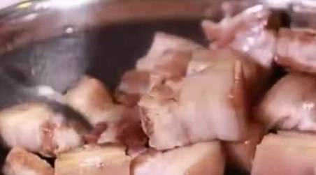 切好的五花肉放锅里,焯水,在焯水的过程中,让肉多煮一会儿,把肉煮透,煮硬,炒的时候才出油多.煮15分钟.捞出泡沫.