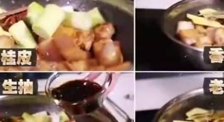 汤汁比较浓的时候,揭开锅盖,捞出葱调料,大火收汁