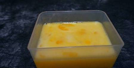 2.准备蛋液。鸡蛋数量视食用人数而定,我一家三口,一般是3-4个蛋。准备一碗的水淀粉,水调入淀粉搅匀便可,然后倒入打好的蛋液中。水淀粉适量便行,再加入清水,水量跟鸡蛋液的比例是1:1,再调入适量的盐(盐是主要调味,后面什么也不加了),汇入以后进行搅拌均匀。