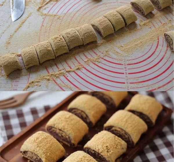 第六步:然后我们从头卷到尾,卷好之后我们切成小块就完成了