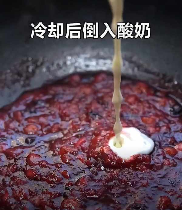 待果酱冷却后,倒入酸奶,再将两者搅拌均匀,倒入雪糕模具中。