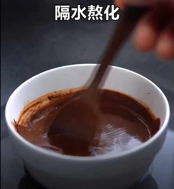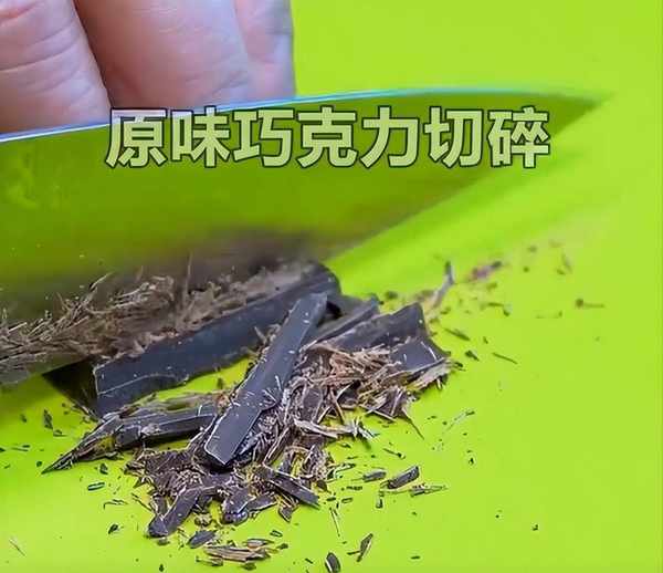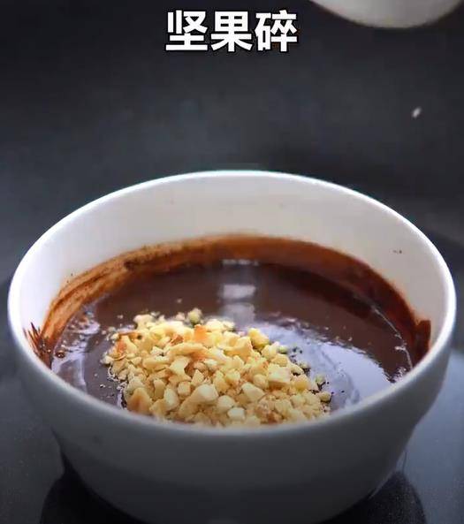 放入冰箱冷冻4个小时,将原味巧克力切碎,放置小碗里隔水熬化,放入坚果碎。