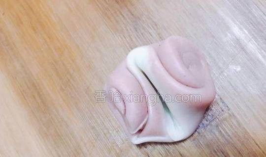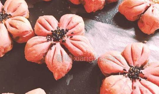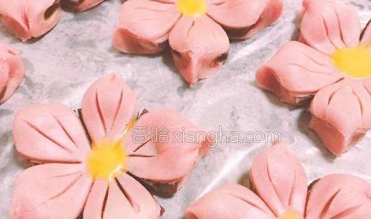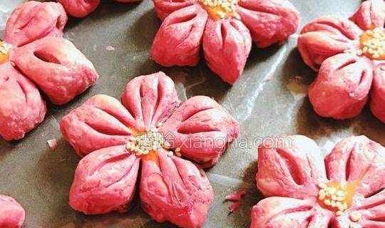 7.捏一下,即可成五个花瓣。转移到烤盘的时候最好用刮板辅助。